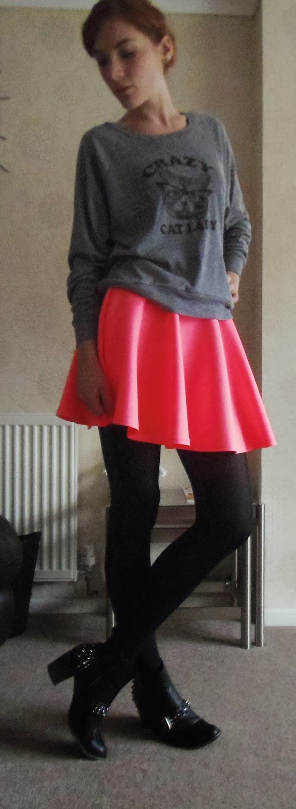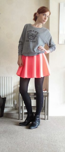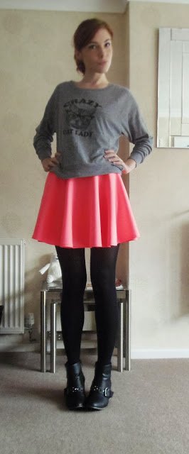 Ahh this skirt, I’ve only had the balls to wear it once despite loving it, it’s so bright it sends off a pink glow when I wear it and I’m always a bit nervous of attention when I’m out in public. However I did decide to brave it on Thursday, which was so grey and rainy it needed some serious brightness. I think I cheered up Tesco at least.