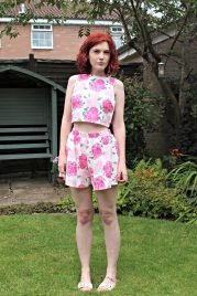 I was first drawn to the print of the co-ord, that and the fact it’s shorts and a cropped top rather than a body con skirt and super tight vest. The shorts sit nice and high on the waist which makes them super flattering and they are also a decent length which was a huge pull for me as I just don’t do hot pants (or body con). The top has a zip all the way down the back which breaks up the florals a little and also looks pretty awesome teamed with denim.