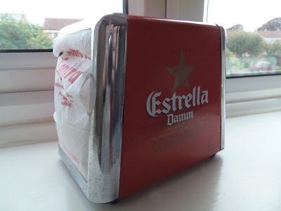 Drying my “I miss Spain” tears on napkins, from my authentic Spanish napkin holder, donated by one of the many cafes we visited after a little bit of persuasion on Ellie’s behalf!