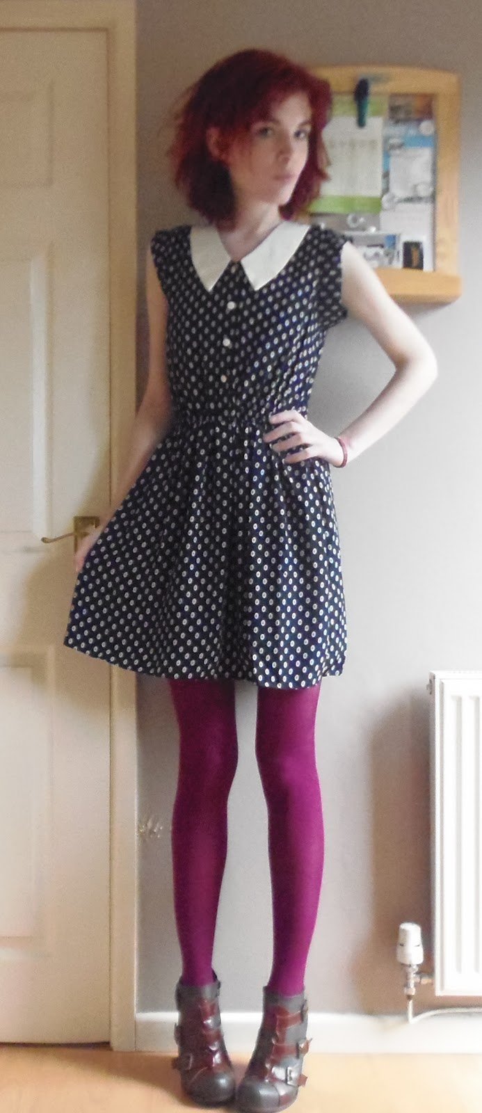 i love the colour of the tights paired with this dress, looks so good together! x